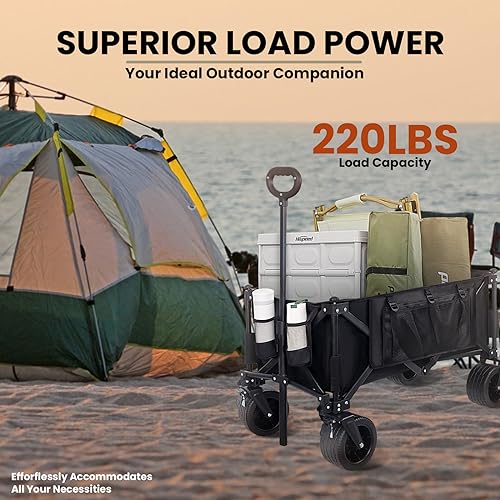 • PRODUCT: Collapsible Folding Wagon, Beach Wagon Cart Heavy Duty Foldable with Big All-Terrain Beach Wheels for Sand, Collapsible Outdoor/Garden Utility Wagon cart - 220lbs Weight Capacity