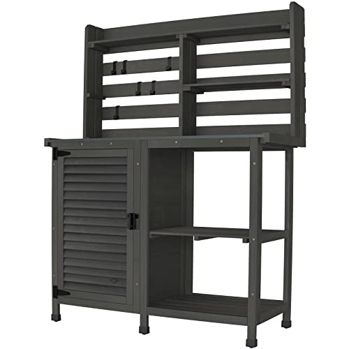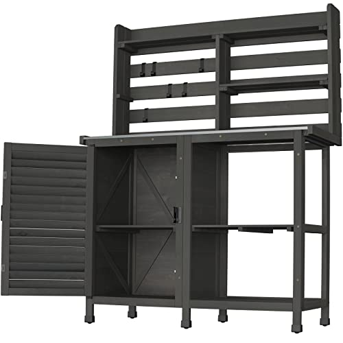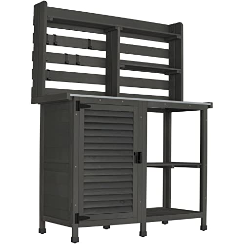 GDLF Potting Bench Table Large Garden Outdoor Work Bench Metal Tabletop Workstation with Storage Cabinet Shelf Dark Grey