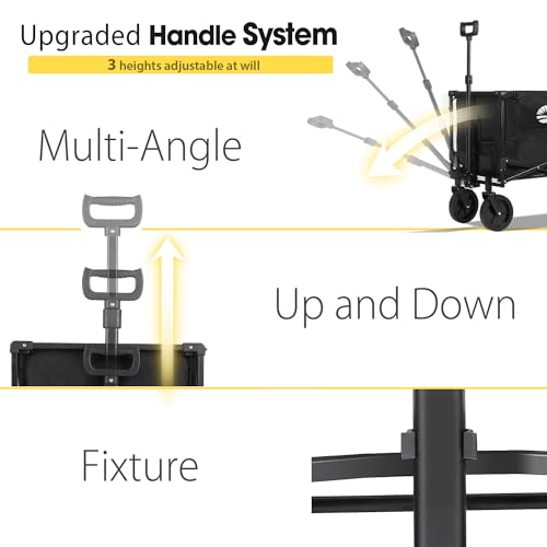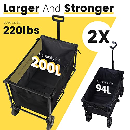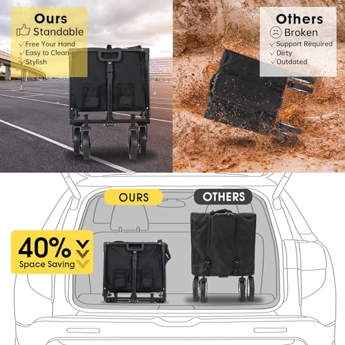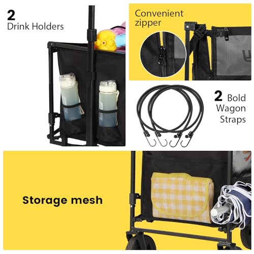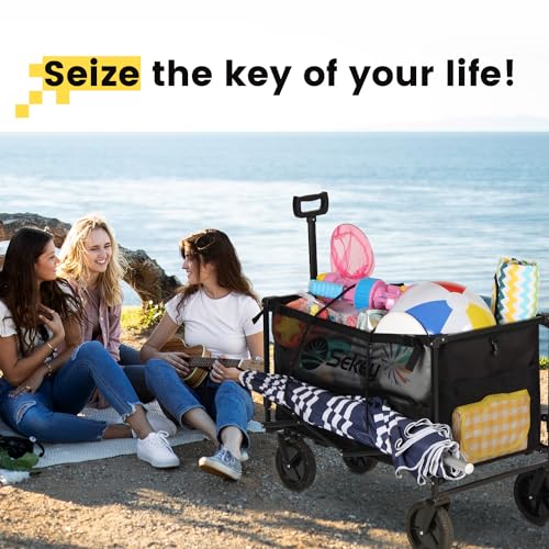 Sekey Collapsible Foldable Wagon with 220lbs Weight Capacity, Heavy Duty Folding Utility Garden Cart with Big All-Terrain Beach Wheels & Drink Holders. Black