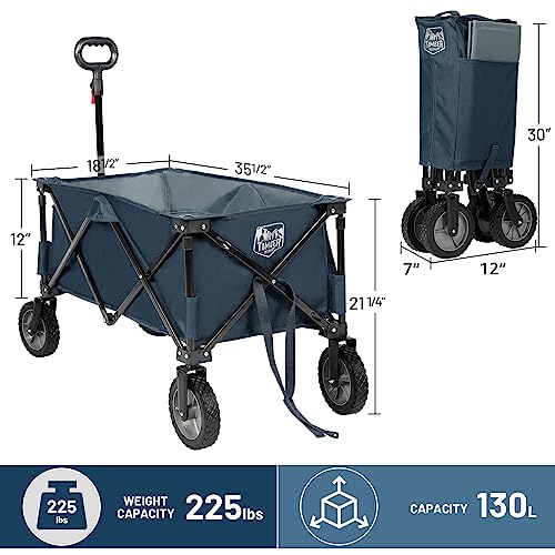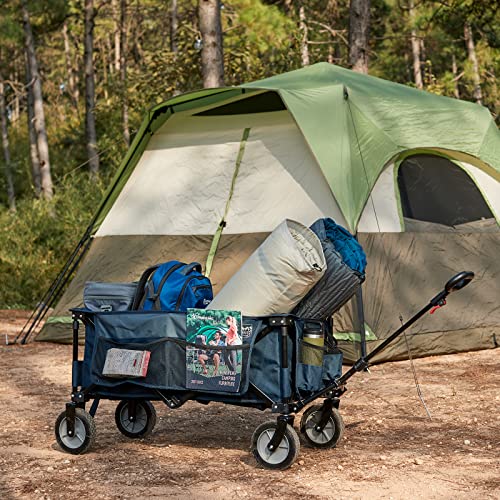 TIMBER RIDGE Collapsible Wagon Cart, Heavy Duty Foldable Garden Cart with Side Pocket and Cup Holders, Folding Utility Wagon for Garden, Sports, Shopping and Camping, Blue