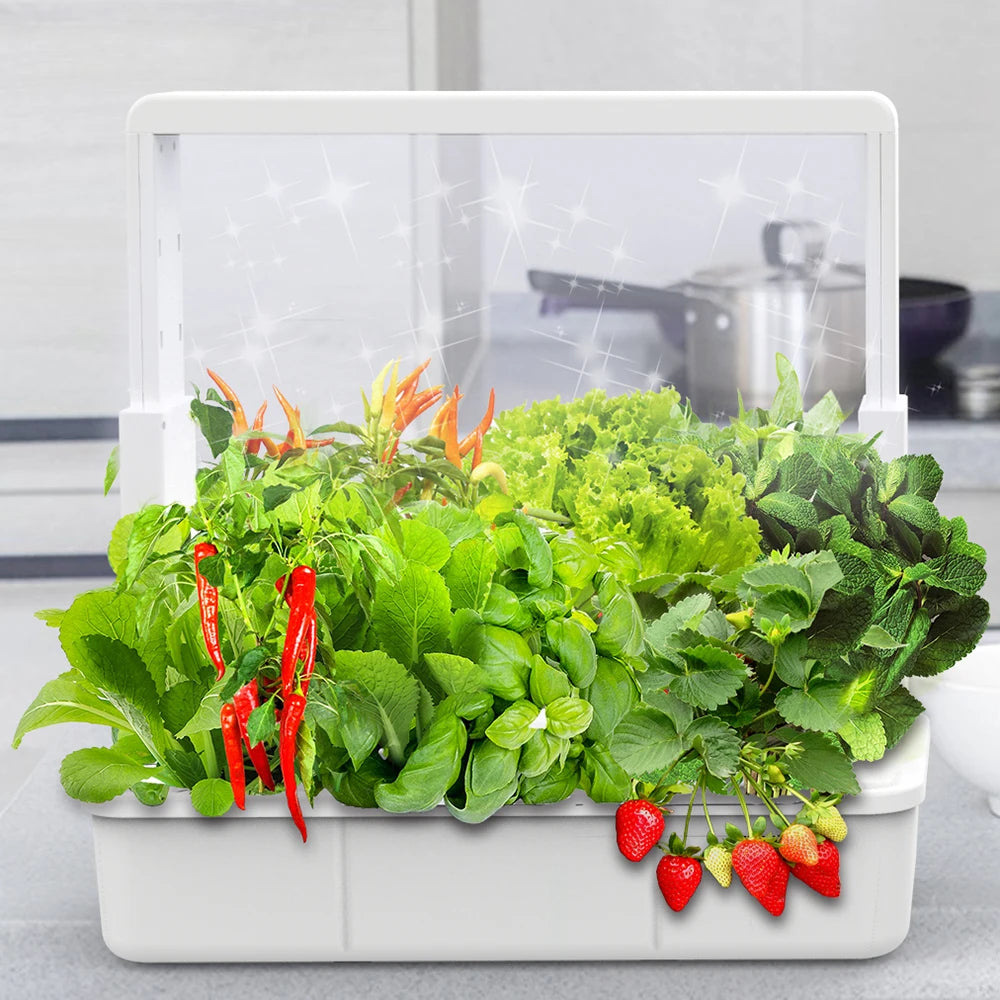 This hydroponic growing system simplifies indoor gardening with its soilless and efficient design. The hydroponic method delivers nutrients directly to the plant roots, resulting in faster growth and higher yields compared to traditional soil-based methods. The use of non-toxic materials ensures that your plants, and ultimately your food, are safe and healthy. (Specify what makes it "smart." For example: "The system features smart planting technology, including a built-in timer for automated light cycles and an app for monitoring plant growth and nutrient levels.") (Specify other features if known. For example: "The system also includes a water pump to circulate the nutrient solution and an adjustable light height to accommodate plants as they grow. The kit comes with a starter supply of nutrient solution.") (Specify dimensions if known. For example: "The system measures [dimensions], making it ideal for countertops, shelves, or any small indoor space.")