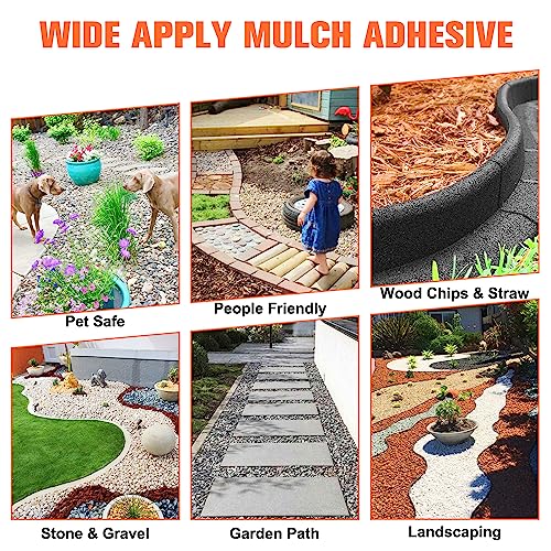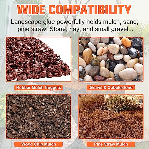 • Superior Mulch and Rock Adhesive: Our Mulch Glue is a powerful solution designed to hold mulch, wood chips, shells, sand, pine straw, pebbles, stone, and gravel in place, providing a reliable and long-lasting bond.