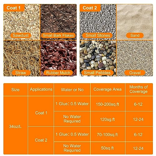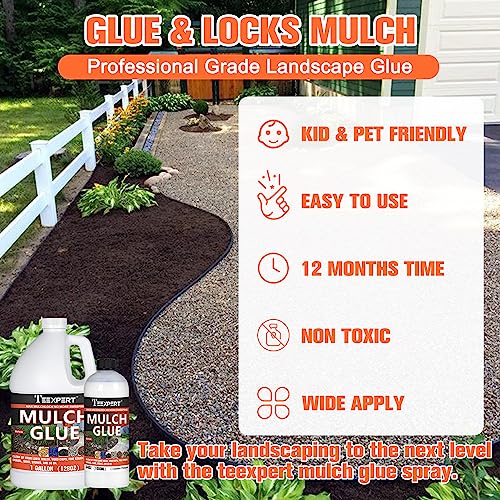 • PRODUCT: Teexpert Mulch Glue-1 Litre/34OZ Mulch Glue for Landscaping, Ready to Use Mulch Glue Stabilizer High Strength Landscape Adhesive Lock Non-Toxic Resin Binder for Gravel, Stones, Mulch & Bark