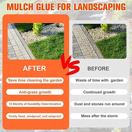 • Versatile Application: Works with any landscape material. Whether it's light and soft materials or heavier varieties like gravel and pebbles, our permanent mulch glue provides a mega-hold for all your flower and landscaping beds.