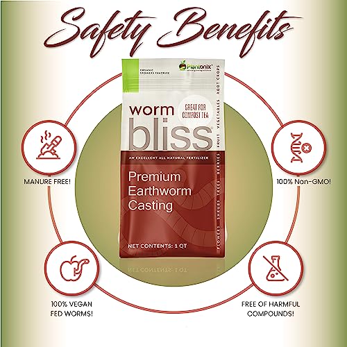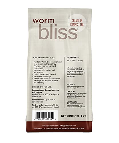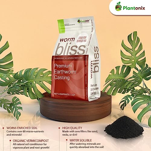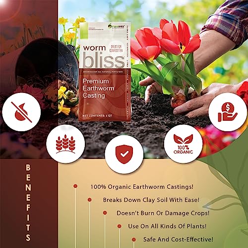 Worm Bliss - Pure Organic Earthworm Castings - All Natural Plant Fertilizer and Soil Enhancer - Potting Mix for Plants, Vegetables, Flowers, and Indoor and Outdoor Gardens (1 Quart)