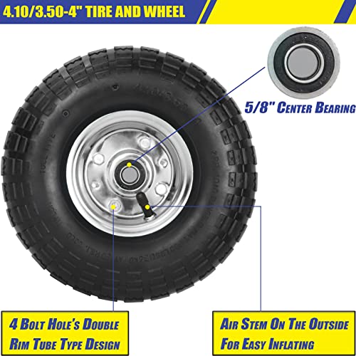 2 Pack 4.10/3.50-4" Pneumatic Air Filled Heavy-Duty Wheels/Tires,10" All Purpose Utility Wheels/Tires for Hand Truck/Utility Cart/Garden Cart,5/8" Center Bearing,2.25" Offset Hub…