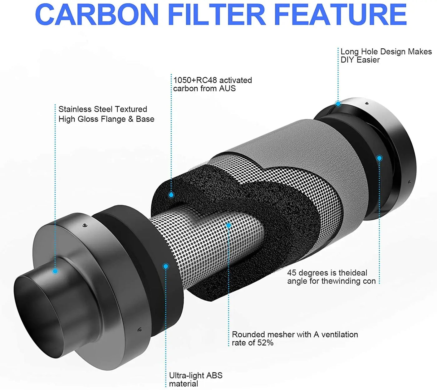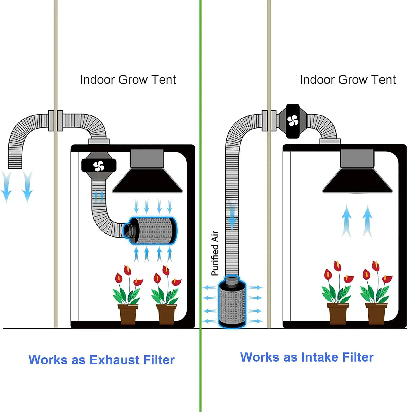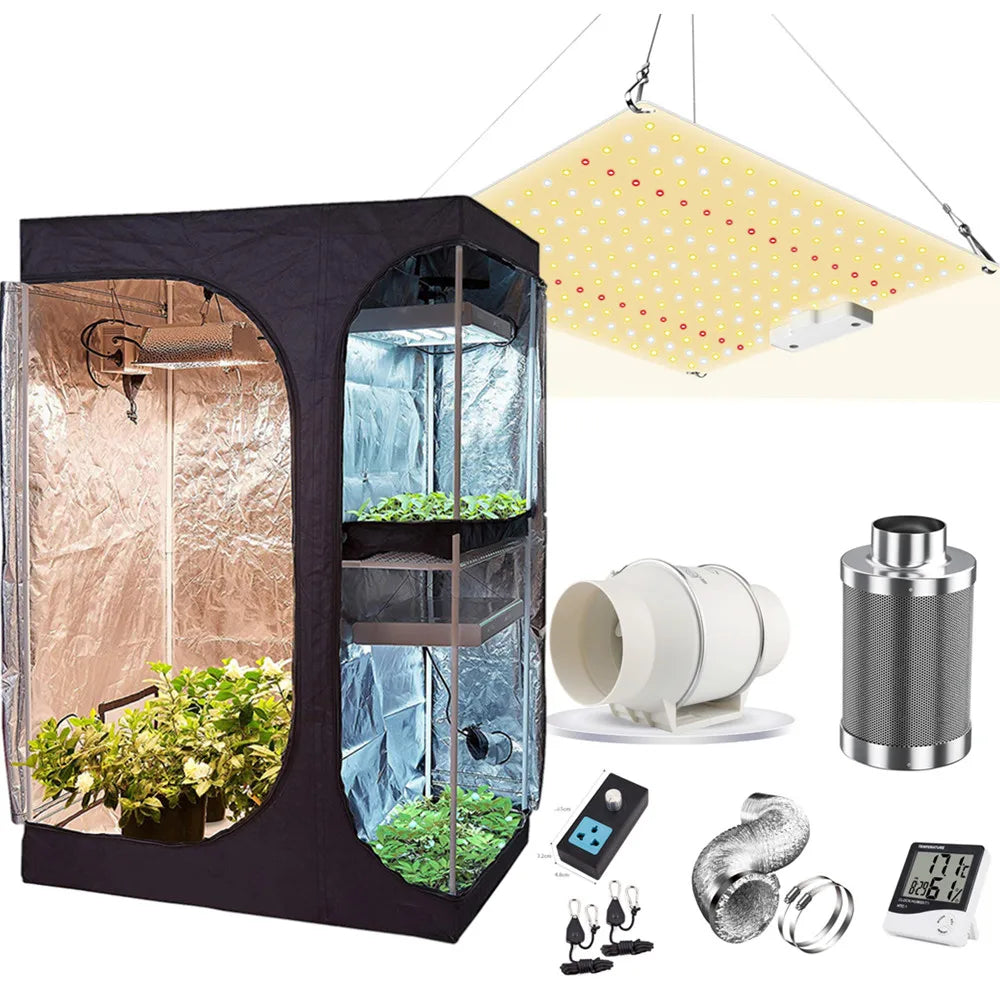 The included LED grow light provides the essential full spectrum of light your plants need for healthy growth, from seedling to flowering and fruiting. (Specify the wattage or type of LED if known. For example: "The kit includes a [wattage] LED grow light with a full spectrum output.") The 4-inch filter set effectively removes odors and volatile organic compounds (VOCs) from the grow tent, ensuring clean and fresh air. This is especially important for indoor growing, where odor control is often a concern.