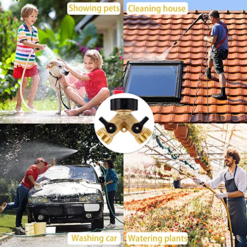 Biswing 2 Way Garden Hose Splitter Converts a single water outlet into 2 ways, very convenient for you to control the work in different places at the same time. Made of high quality heavy duty brass materials, solid and durable, corrosion proof and has a long service time. Both hose connector can be turned on and off individually, so you can use one or others according to your need. Notes: 1.Please choose the correct hose size. 2.To prevent leakage, make sure the connector has rubber ring. 3.When the weather gets cold, be sure to remove the hose splitter from the faucet. 4.If water leaks after a long period of use, please replace with a new washer. 5.Do not leave the fitting unattended or under pressure when not in use.