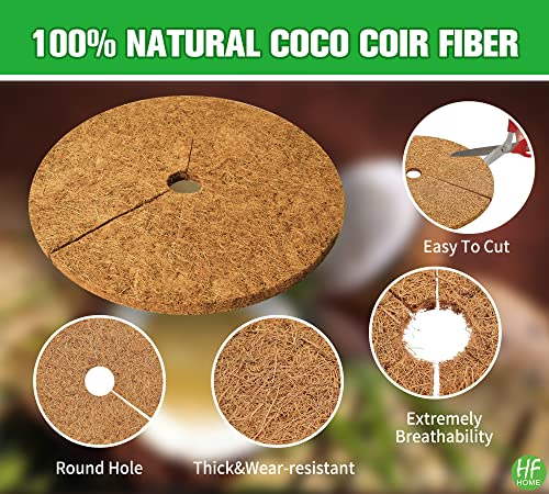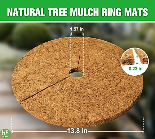 HFHOME 4pcs 13.8" Dia Coconut Fibers Tree Mulch Ring Protector Mat, 13.8 Inch Natural Coco Coir Tree Protection Mats, Tree Disc Plant Cover for Indoor Outdoor Lawn, Potted Plants