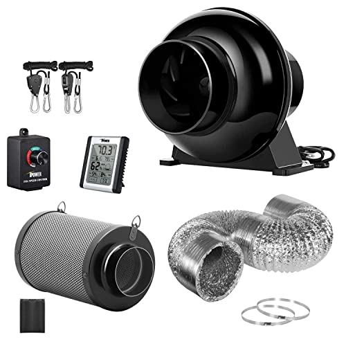 iPower 4 Inch 195 CFM Inline Fan, Upgrade Air Carbon Filter, 8 Feet Ducting, Speed Controller Rope Hanger and Temperature Humidity Monitor Kits, for Grow Tent Ventilation
