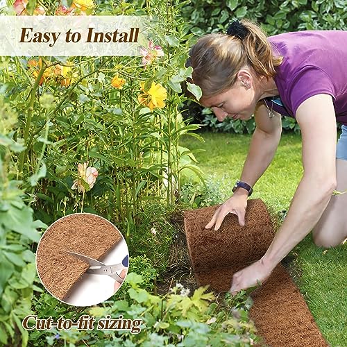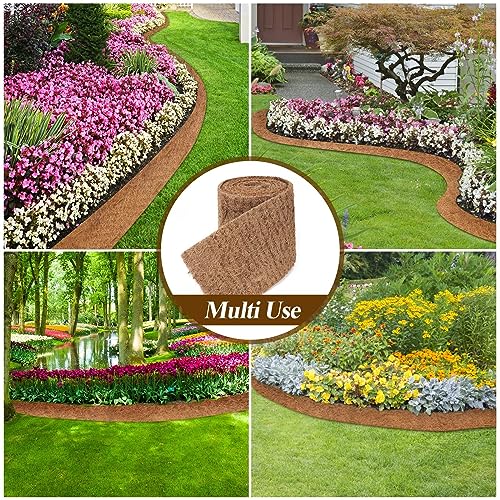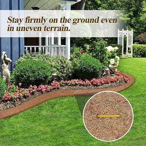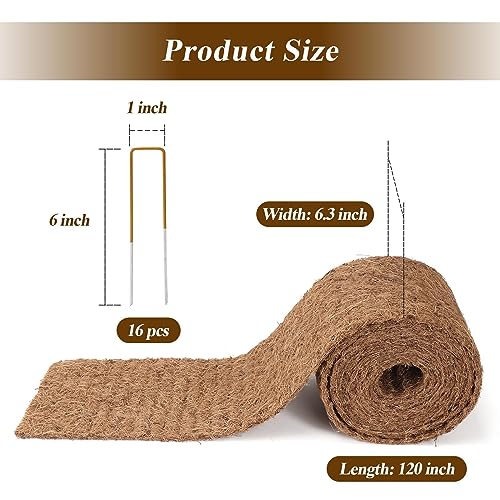 Natural Mulch for Landscaping 120" X 6.3", Coconut Fiber Mulch Mat Roll with 16 U-Shaped Steel Stakes, Garden Edging Border Mat Natural Looking Permanent Mulch Barrier for Plants Vegetables & Flowers