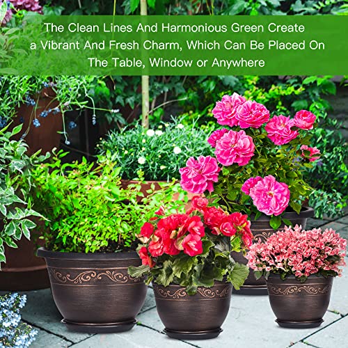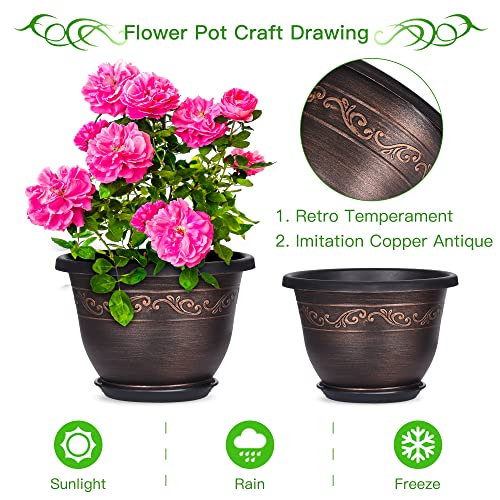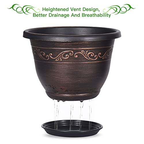 • 【EXCELLENT DRAINAGE AND TRAY】These lightweight plastic Retro engaving pots for plants come with multiple drainage holes in the bottom to let exceed water easily flow out to help prolong the life of your plants, and the saucers are provided to hold just the right amount of water. Our classic 6 packs of 8 inch plastic flower planter could create a healthy living environment for your indoor and outdoor plants