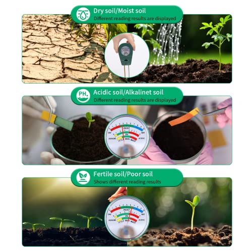 Soil Moisture Meter,3-in-1 Soil Moisture/Fertility/pH Tester,Plant Water Soil, Soil Hygrometer Sensor,Soil Test Kit for Garden, Farm, Plant, Outdoor, Indoor, Lawn Use (Green)