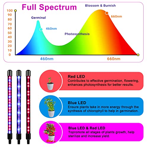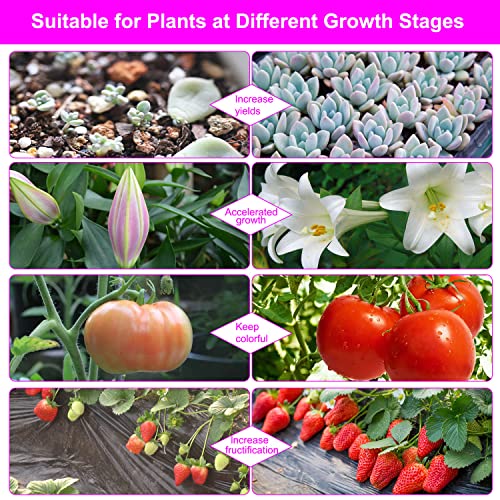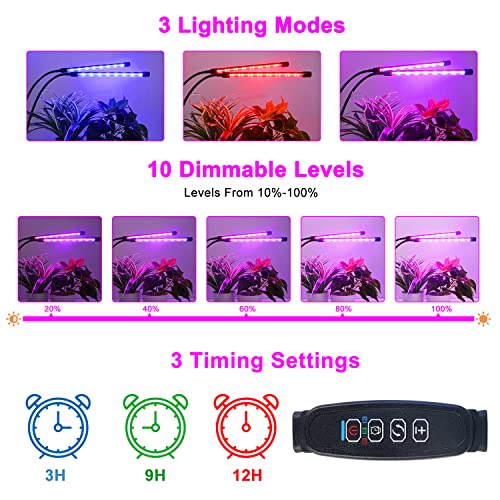 • 🌱【3 Color Settings & 10 Levels Dimmable】There are 3 color modes - Purple Light, Red Color, and Blue Color. Red light promotes photosynthesis, germination, blooming, and fruiting. Blue light ensures the plants take in more energy through chlorophyll synthesis to help germination and vegetable. The plant lights support you in adjusting the brightness to 0%-100% by operating the controller.