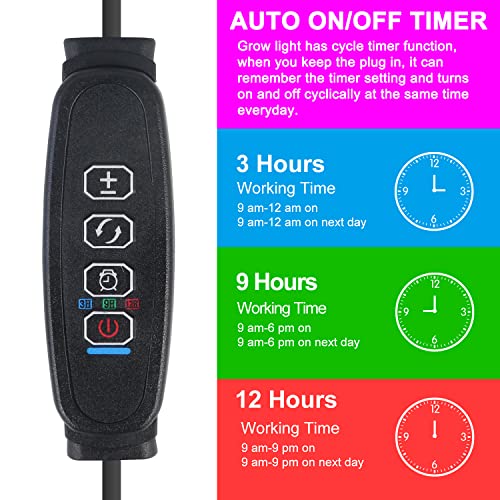 • 🌱【Timer Function & Multiple Settings】The indoor seedling light offer the circular memory timer function with 3 options-3h/9h/12h. When keeping power, it can automatically turn on and off every day according to your settings.