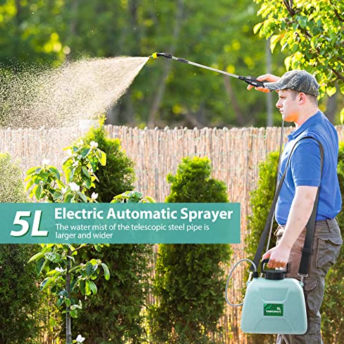 SideKing 1.35 Gallon/5L Battery Powered Sprayer, Electric Sprayer with USB Rechargeable Handle, Portable Garden Sprayer with Telescopic Wand, 3 Mist Nozzles and Adjustable Shoulder Strap