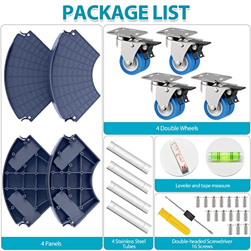 • 【EASY TO INSTALL】It only takes 4 steps to easily complete the assembly, which is very simple. The package includes instructions, 4 casters, 4 panels, 4 connecting tubes, a screwdriver, and some screws. In addition, we also provided an additional horizontal instrument (easy to distinguish uneven ground and better adjust the height of the product), and a tape measure (convenient for measuring the size of items to adjust the size of the plant caddy).