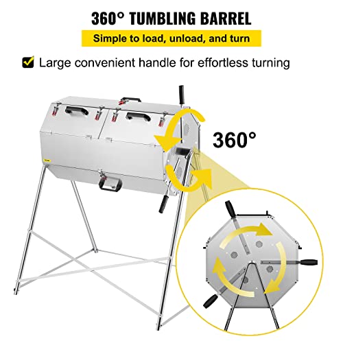 VEVOR Compost Tumbler, 125L / 33 Gallons, Rustproof Stainless Steel Dual-Chamber Garden Composter, Heavy-Duty, All-Season Outdoor Compost Bin, Fast-Working System for Composting Kitchen & Yard Waste