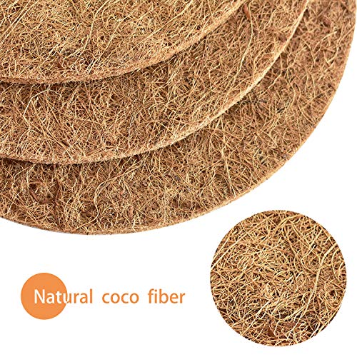 Your plants need enough nutrients and water in spring. Do you have no time to care because of your busy life? Please find out about our products. specification:-Quantity: 3 Coco Palm Cover Ring Tree Protective Mats-Very practical size: 14 inches in diameter-Natural and organic tree rings: 100% natural coconut fiber Features:-Coco coconut shell-covered ring tree protection mat is made of coconut fiber, which has high moisture retention and breathability.-The round design fits the shape of an ordinary flower pot and is very easy to use, just place it around the plant roots in the flower pot.-They can be used for any occasion: nursery, balcony, terrace, office, greenery, wedding greenery decoration. Features:-They play a role in moistening the soil and preventing weeds from absorbing nutrients, and they are more conducive to plant root health.Tips:-Please read the size information carefully before buying.-It is easy to slip them around a tree trunk of any size. Just use a pair of scissor to customize and enlarge the center-When used outdoors, it may be blown away by the wind, and a stone can be placed on top to prevent this.